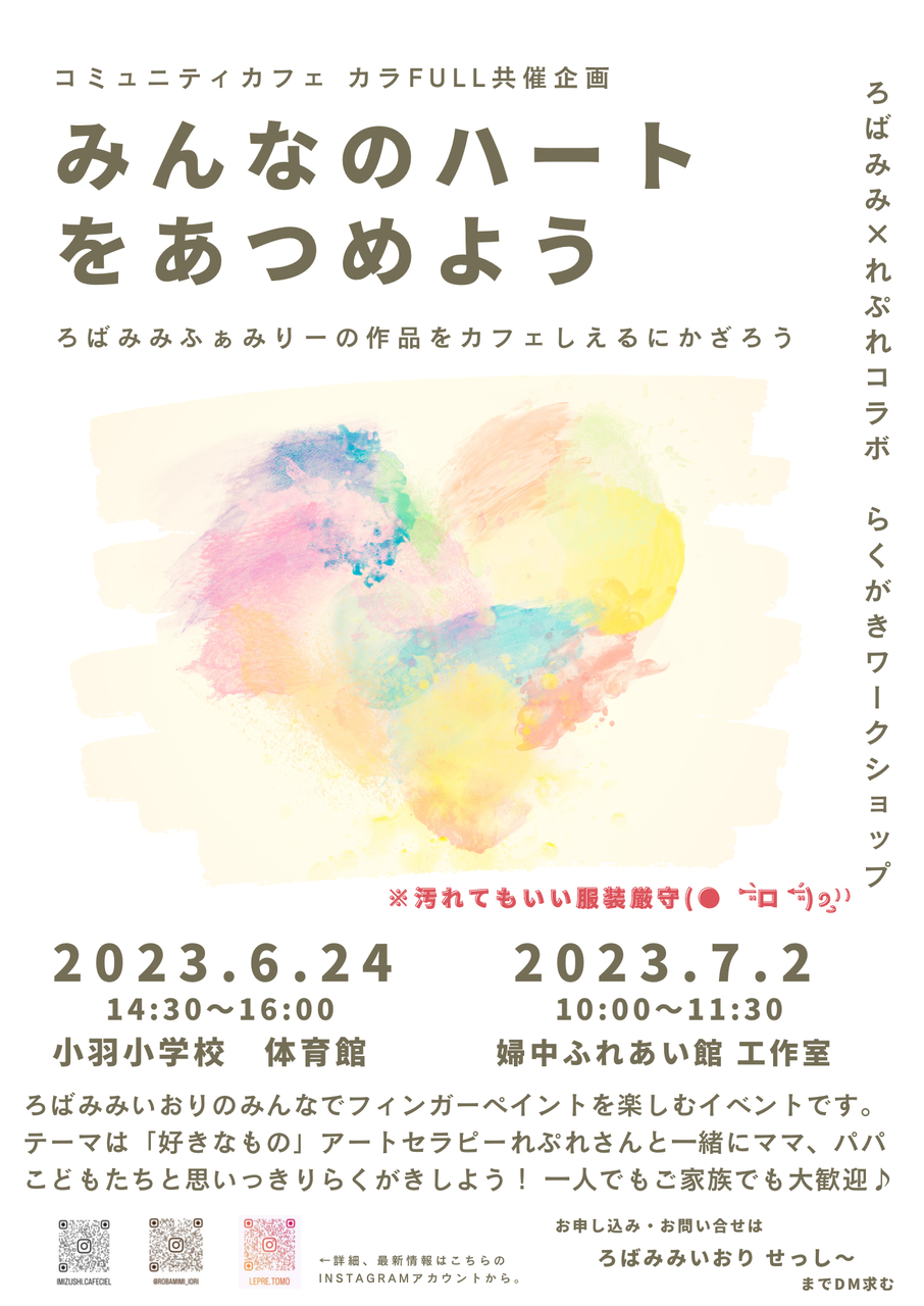 7月2日(日)「みんなのハートをあつめよう」 ろばみみ&れぷれコラボ企画 らくがきワークショップ
